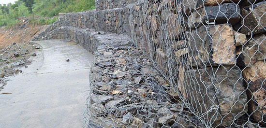 石籠網(wǎng)是使用機(jī)器將金屬線材單向搓捻兩周編織的六角形網(wǎng)(六角網(wǎng)) 制成的網(wǎng)箱,厚度在0.15-0.5m(含0.5m),又稱石籠和護(hù)墊,石籠網(wǎng)墊由隔板分成若干單元格,為了加強(qiáng)石籠網(wǎng)墊結(jié)構(gòu)的強(qiáng)度,所有的面板邊端均采用直徑更大的鋼絲。